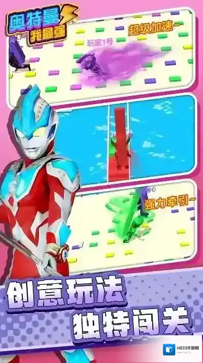 奥特曼我最强是一款以经典奥特曼角色为主题的创意跑酷作品,玩家将置身于充满科幻感的未来城市跑道,化身为光之巨人开启魔性跑酷冒险,可自由挑选迪迦、赛罗等多个奥特曼皮肤,操控角色在奔跑过程中收集同色木板,通过搭建桥梁跨越深渊、避开陷阱,在快节奏的挑战中感受流畅的动作设计与色彩鲜明的场景切换。