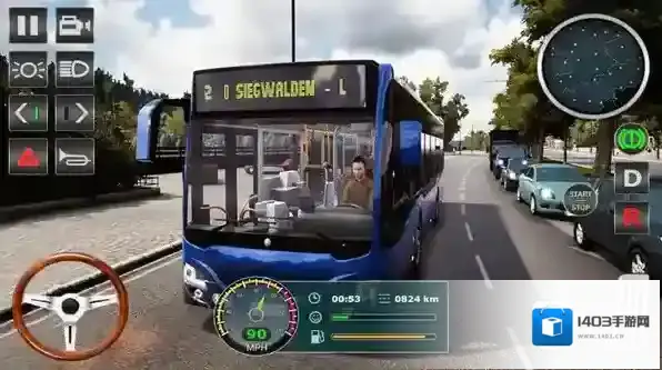 3、进入驾驶,按设定操控方式,驾驶巴士在道路接客、行驶,完成运输任务推进游戏。