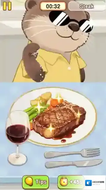 2、游戏中烹饪出各种美食之后,都会有可爱的小水獭出来享用它们,场面看上去会非常的温馨治愈。