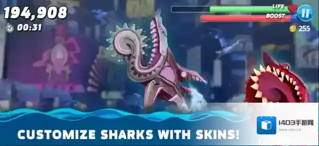 同饥饿鲨进化一样,都是一些,通过慢慢积累金钱,获得更强大的鲨鱼但是这里的鲨鱼更加的多种多样,地图也更加丰富,后续还增加了一些基因变异的鲨鱼,有特异技能,我也是挺喜欢的,玩到后期会非常爽。