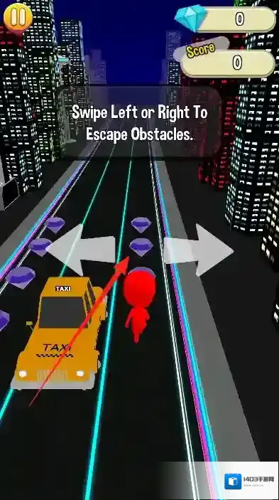 2、中期赛道出现颜色随机变换的动态障碍物,迅速点击颜色按钮切换至黄色,侧身躲过紫色障碍,顺势收集路径上的金色钻石。