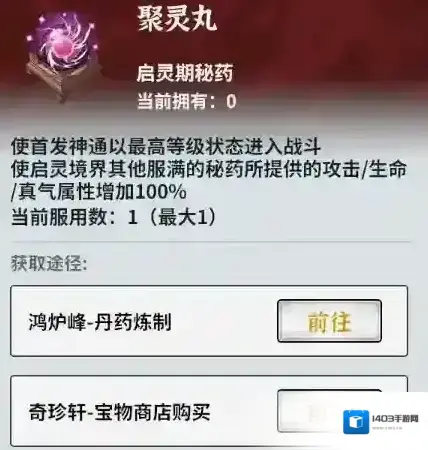 宝光阁小概率刷出来红色丹药成品,但需要仙玉才能买。