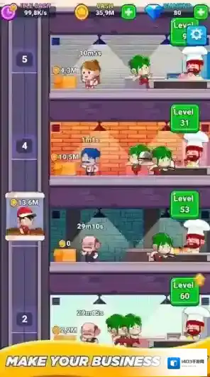 1、轻松上手的经营体验,从零开始打造餐饮王国。简单的拖拽操作就能完成菜品制作和服务流程,让每位玩家快速融入角色。