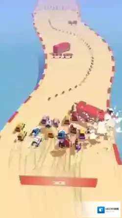 3、在港口环形赛道,跟随箭头,与其他车辆竞速,绕圈冲刺终点。
