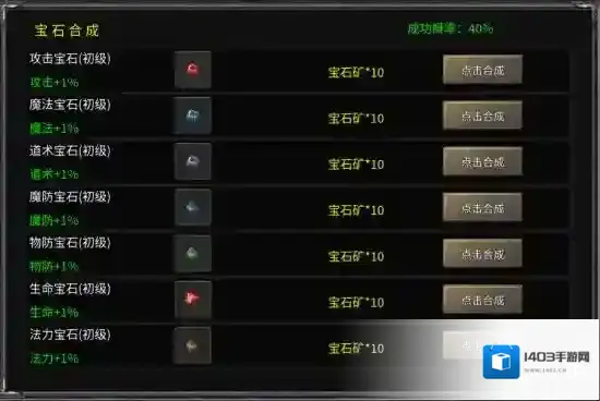 10个宝石矿可合成初级宝石,3个初级宝石可合成中级宝石,3个中级宝石可合成高级宝石。