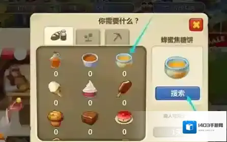 4、订购特殊商品:除了直接购买货架上的商品外,我们还可以点击大胡子男人(如下图所示),订购特别需要的商品,点击后,会出现可供选择的商品列表,以图中所指的商品为例,点击搜索。