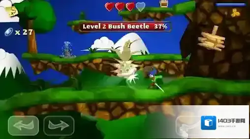 2、接着跟随地图的指示,我们进入到关卡之中,左侧的箭头控制移动,右侧箭头控制跳跃,长按可以跳的更高。
