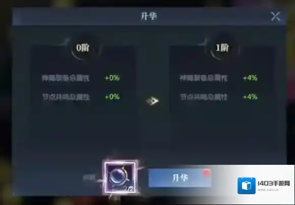 可以消耗神谕之兆来提升神赐升华等级。提升后,已穿戴的神赐装备的属性和节点共鸣的固定值属性将按百分比提高。若孔位未穿戴神赐装备,则加成属性不生效。
