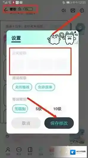 3、进入游戏房间后,点击右上角设置图标,观察左上角锁型状态标识,在密码管理项删除原有密码,最终点击确认修改。