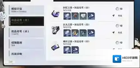 4、武器素材,用于升级武器,同样需要消耗体力刷拟造花萼来获取,此外,突破等级所需的怪物材料部分可以通过打怪掉落,但也有一部分需要刷拟造花萼。
