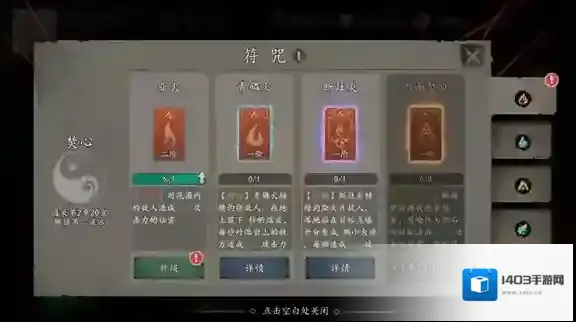 3、在关卡里右下角会自动生成各种属性的符咒让你使用,每次获得的符咒品质都是不同的。