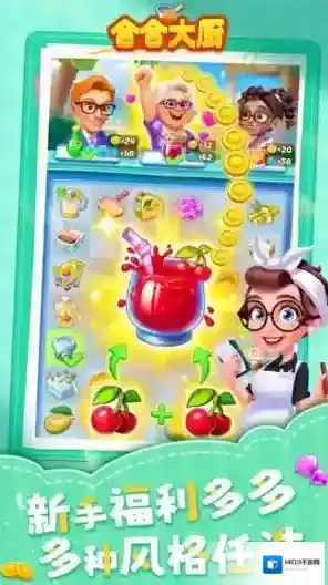 合合大厨,一款合成食物经营餐厅的游戏,玩家需要一边合成美食来完成顾客的订单,一边消耗金币来改造你的餐厅。在合合大厨里有很多美食等你去合成,丰富的食材可以自由选择使用,非常有趣的剧情会给你更多快乐,各种风格的装饰可以当你自由选择使用,不断改装你的餐厅来打造属于自己的梦想餐厅。