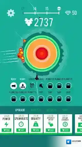 3、每一次几种星球都会获得金币,可以用来升级自己的各项属性。