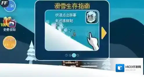 4、游戏屏幕上方会有此时的奖励状态,玩家通过在滑行中收集金币奖励、完成高难度动作等,可以填满奖励状态,从而激活各种高级工具例如火箭船等,还可以和企鹅、雪怪人一同搭载着火箭船奔向远方。