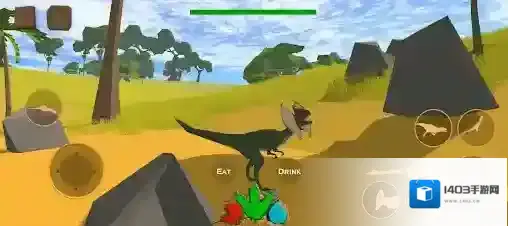 5、攻击其他恐龙可以将其吞食,吃掉对方可以恢复你的生命值和能量,饥渴值可以通过喝水来恢复。