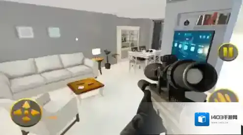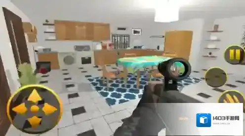 3、物理交互策略,向鱼缸射击制造水域阻碍敌人追击,破坏吊灯触发坠落眩晕效果,冰箱门摆动形成临时掩体阻挡弹道。