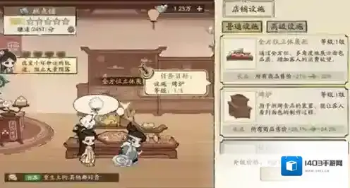 3、点击设施选项,可升级或解锁店铺设施,提升设施等级以增加店铺收益。