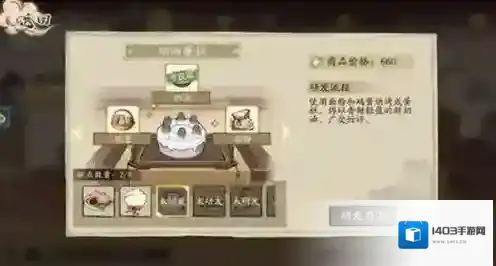 2、进入店铺,点击糕点选项可研发全新美食,但需先解锁对应材料。